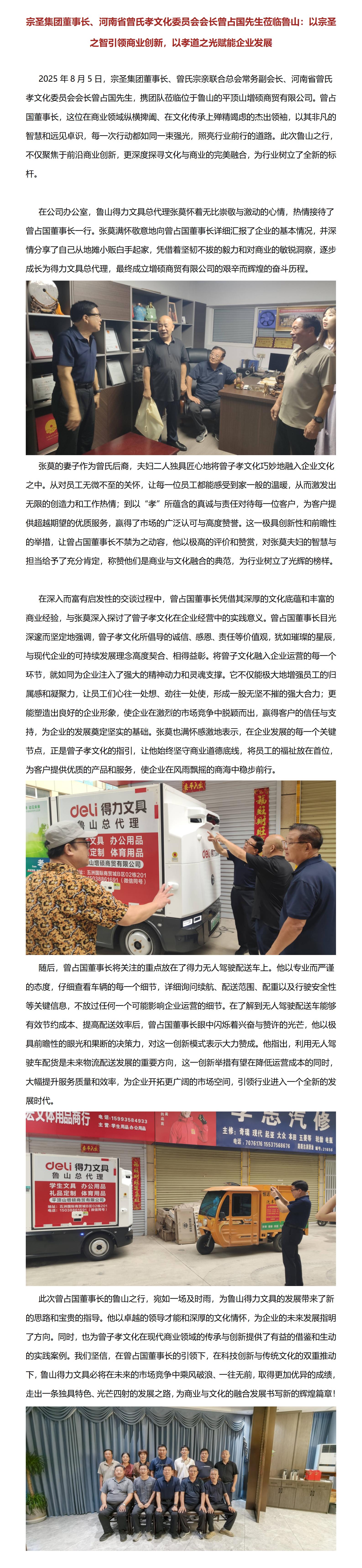 宗圣集团董事长、河南省曾氏孝文化委员会会长曾占国先生莅临鲁山:以宗圣之智引领商业创新,以孝道之光赋能企业发展
